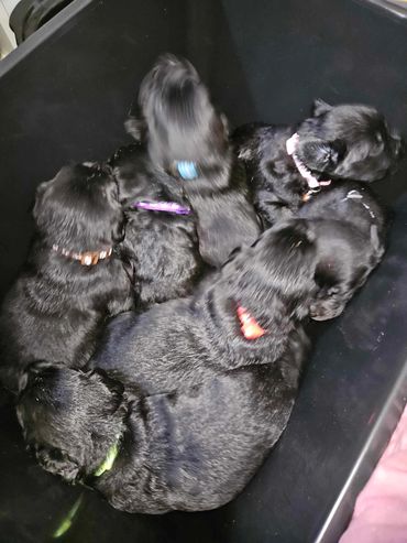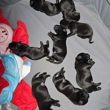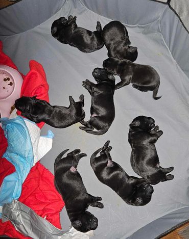We don’t use kennels, so your puppy has been treated as a member of the family and used to normal household events. Pre-training – part of everyday living - includes doggie door use, noise desensitization, sit/come, exposure to leashes, kids, crate training, and potty training to puppy pads. They have been exposed to car travel and change.