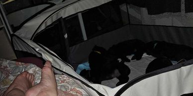 Whether you are in the camp that belives in dog training or not - the fact remains the puppers needed somewhere safe and cleanable to stay overnight with mum. Mum is a much loved bed dog and hence puppers became bedroom crate trained overnight. She gave up sleeping with them several weeks ago preferring the comfort of my bed!